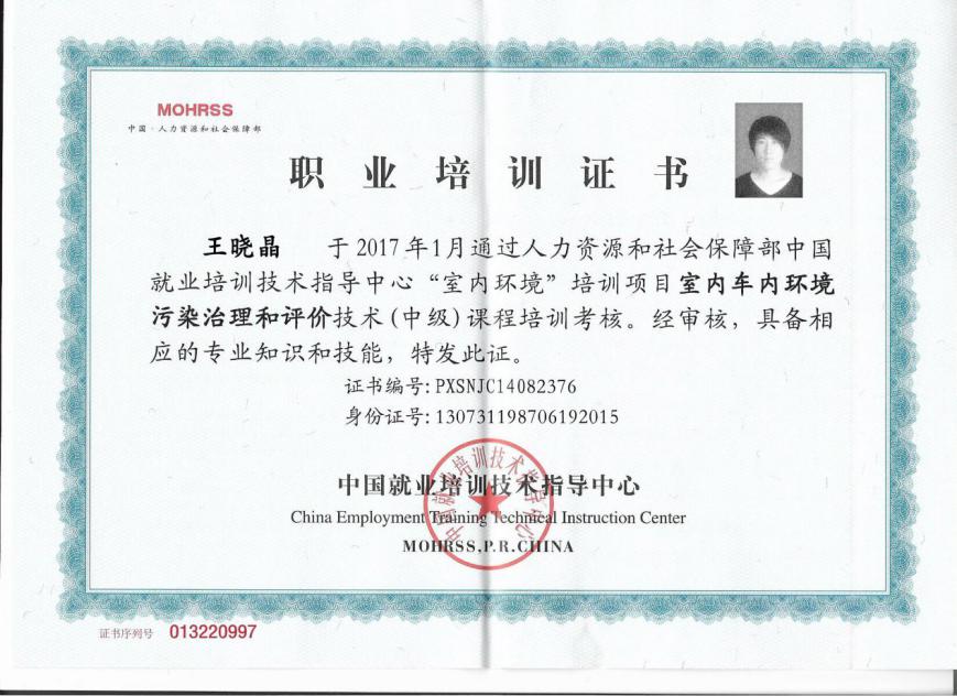 室內(nèi)車(chē)內(nèi)環(huán)境污染治理和評(píng)價(jià)技術(shù)職業(yè)證書(shū)