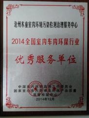 企業榮譽:2014年全國室內車內環保行業優秀服務單位